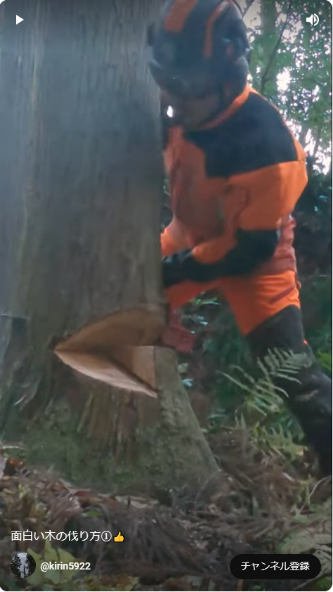 面白い木の伐り方① - YouTube